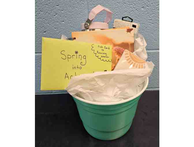 Donated by the Girls Track Team, this basket contains 3 free fitness classes at Running Water in Harbor Springs, a journal, note pad, stainless steel water bottle and exercise band