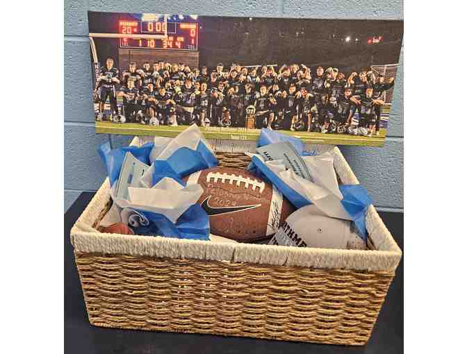 Donated by the Football Team, this basket contains a panoramic canvas photo of the PHS Football Team after their win over Gaylord, an autographed football from that same team, 2 shirts, hat, concession stand coupons