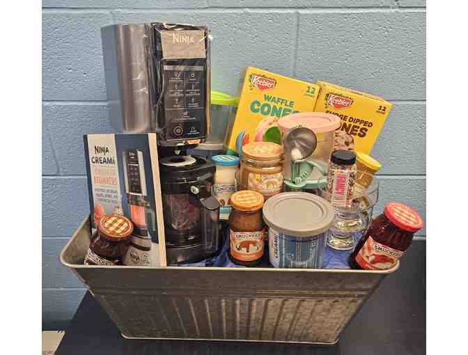 Donated by the Girls Basketball team, this basket contains a Ninja creamy, Ice cream toppings, Ice cream dishes, Cones, Extra storage containers, Recipe book