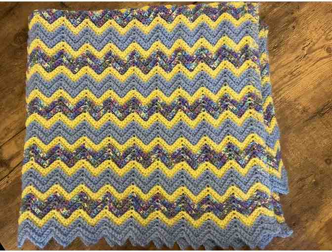 Homemade Afgan Throw- Blue, Yellows and some purple.