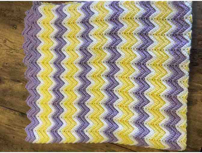 Handmade Afgan Blanket- Yellow, white and purple.