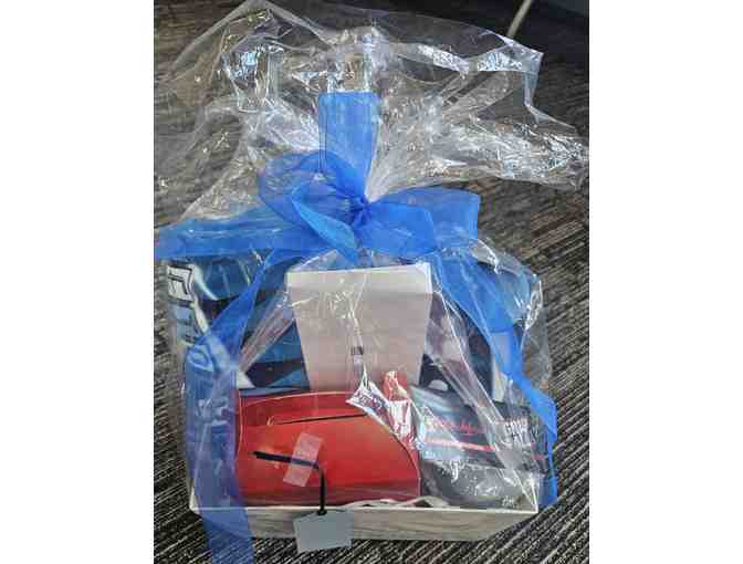 Donated by the Bowling Team, this basket contains an absorbant grip ball, golf glove, golf towel, 1 PHS Bowling Sweatshirt, 2 PHS Bowling T-Shirts and a coupon for bowling/pizza/beverages.