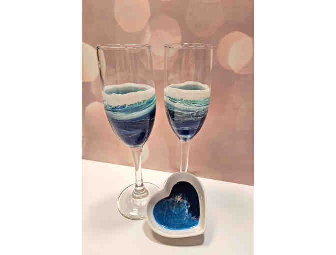 Handmade Ocean resin Champagne glasses and Heart Trinket Dish
