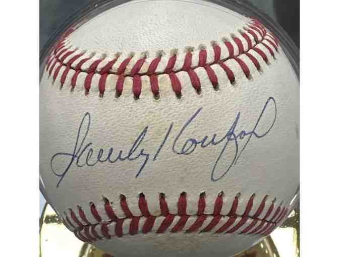 Widely regarded as one of the greatest pitchers in baseball history, Koufax was the first three-time winner of the Cy Young Award, each time winning unanimously and the only pitcher to do so when a single award was given for both the leagues, and was also named the National League Most Valuable Player in 1963. Retiring at the age of 30 due to chronic pain in his pitching elbow, Koufax was elected to the Baseball Hall of Fame in his first year of eligibility in 1972 at the age of 36, the youngest player ever elected. Comes with a certificate of authenticity.