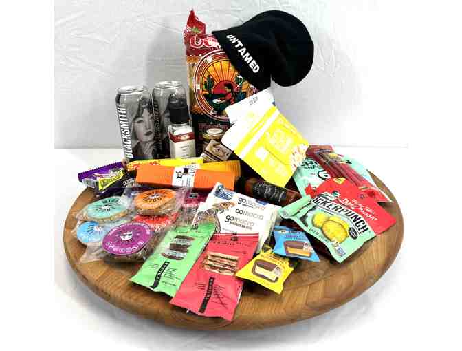 Settle in for the perfect Friday night with this fun and relaxed bundle of goodies. Enjoy a mix of sweet and salty snacks, two cans of Village Beer, and a touque from Untamed for ultimate comfort. The package also includes Swede dish cloths for a practical touch, all sitting on a wooden turn table a stylish addition to your home or art space. Whether you're unwinding alone or sharing with friends, this bundle has everything you need for a laid-back evening.