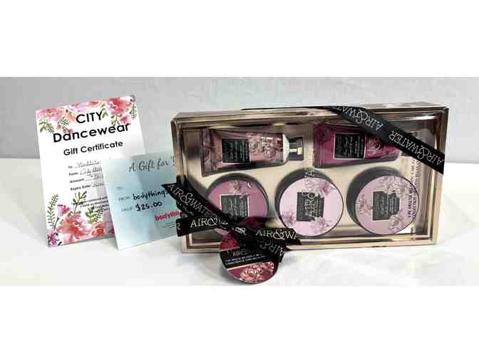 Level up your performer's routine with this curated selection of self-care and dance essentials! Keep your skin nourished and refreshed with Air & Water Alchemy products, then head to Bodythings and City Dancewear to ensure you're dressed to move from ballet slippers to athletic wear. Whether you're a dancer, singer, actor, or all-around go-getter, this package will help you look and feel your best on any stage.