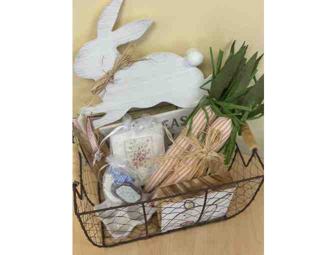A basket of rustic Easter homegoods perfect to spruce up your seasonal decor!