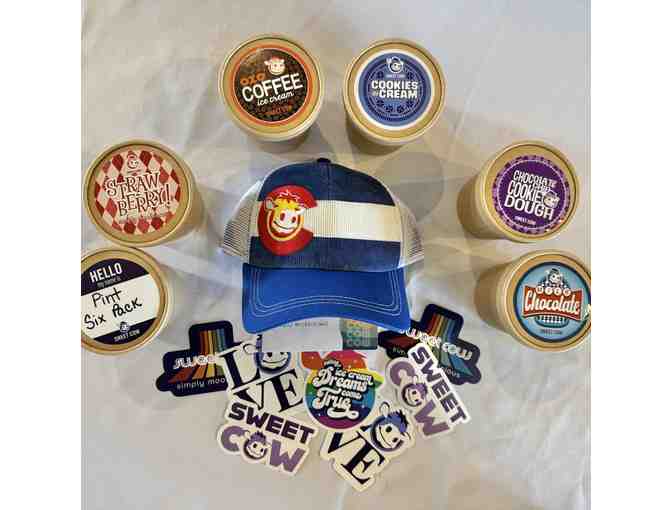 Indulge in six pints of handcrafted, ultra-creamy ice cream from Sweet Cow, Louisville’s beloved local ice cream shop! Whether you love classic flavors, creative seasonal specials, or dairy-free delights, Sweet Cow serves up pure happiness in every scoop. Wear your new Sweet Cow hat to represent this local favorite!