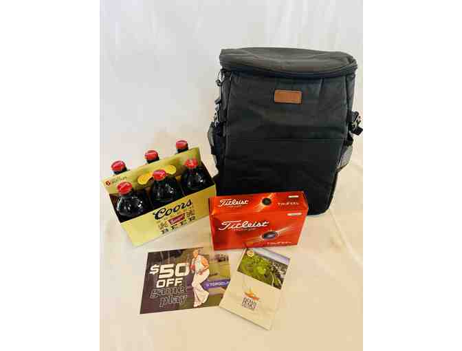 To finish out the day, dive in to your backpack-style insulated cooler bag for a 6-pack of Coors Golden Banquet beer!