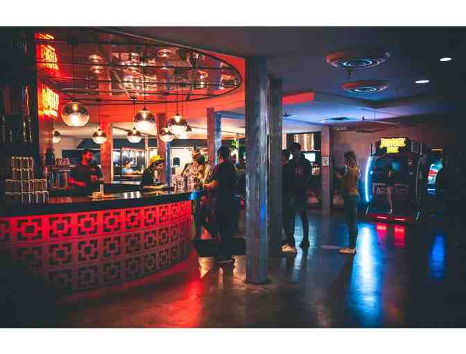 A certificate for four free admissions (good for unlimited gameplay per person) in to the Cidercade, an arcade with locations in Dallas, Austin, Houston, Fort Worth, and Arlington, Texas. A $40 gift certificate to any location of Bishop Cider, CidercadeBishop, or Wild Acre is also included.