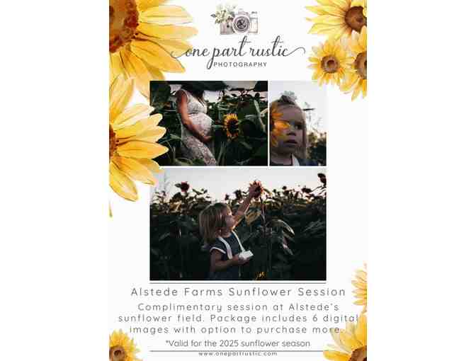 Step into a world of vibrant color with this complimentary session at Alstede Farm’s sunflower field! Enjoy the beauty of nature as you capture stunning moments among the sunflowers. This package includes 6 digital images to remember your day, with the option to purchase more if you’d like to expand your collection. It’s the perfect way to create beautiful memories in a breathtaking setting!