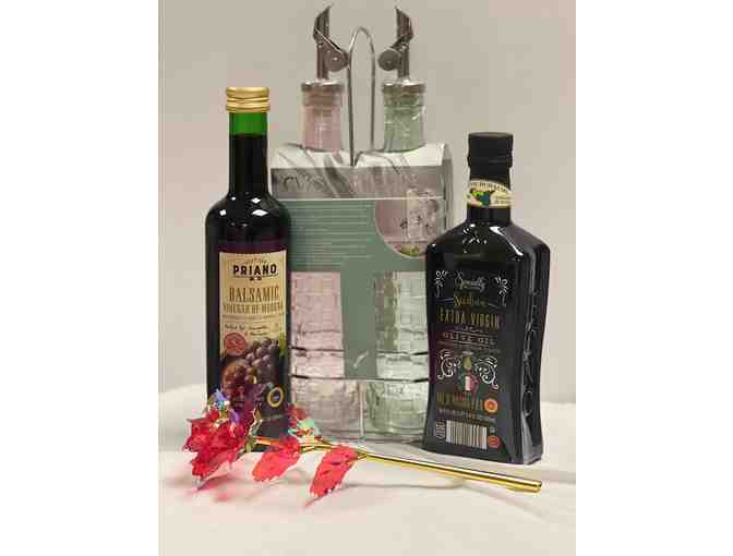 Oil and Vinegar Dispensesrs with extra virgin olive oil and balsamic vinegar pairing