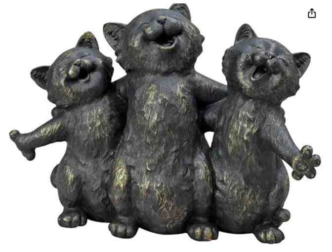 This happy trio of three feline friends belt out a tune only they can hear in this adorable and uplifting statue. The detailed polyresin design adds smiles to any garden, yard or porch and is finished in a weathered verdigris style.