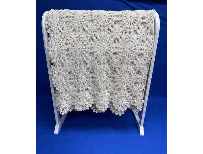 Wrap yourself—or your room—in timeless charm with this beautifully hand-crocheted bedspread. Crafted with care and intricate detail, this cream-colored treasure adds a touch of vintage elegance to any bedroom. Whether draped over a bed or used as a cozy throw, it's a stunning piece of functional art that brings comfort, warmth, and handmade beauty into your home. A perfect heirloom in the making!8