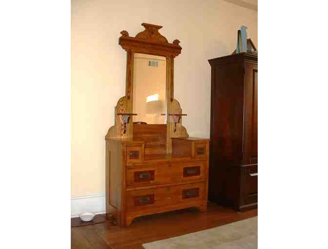 Eastlake dresser that has been in our family for over 100 years. Refinished with a new mirror. Sadly, no family members are interested in taking it.