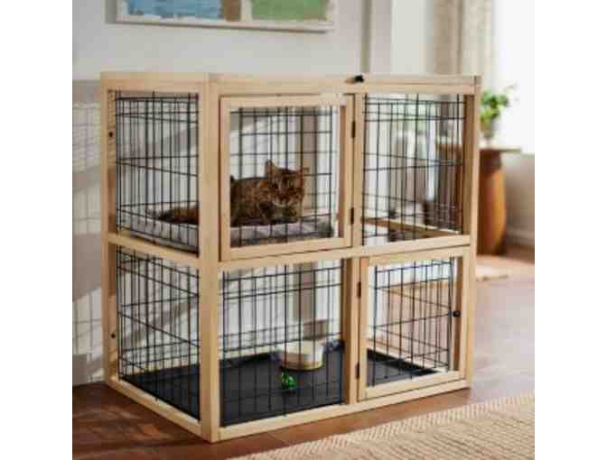 2-Level Collapsible Wood & Wire Cat Cage Playpen