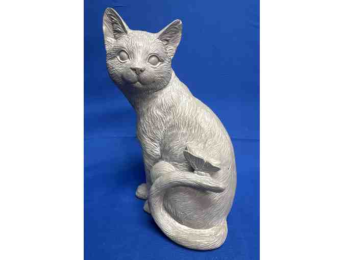 This adorable feline sculpture—crafted from heavy-duty plastic—is both weather-resistant and durable. Perched with poise, a delicate butterfly rests on its tail, adding a touch of playful charm to your garden, porch, or indoor nook.