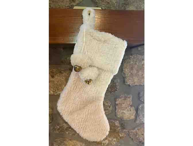 Fleece stocking with Jingle bell pom poms!  So cute!!!  The stocking measures 15” and is 10” from heel to toe.