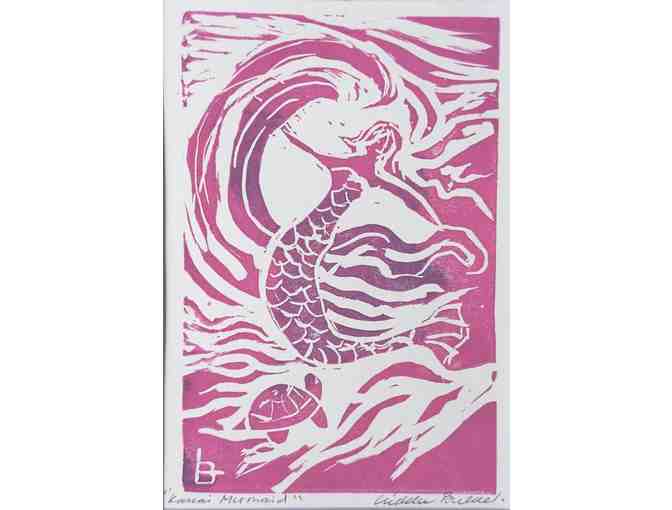 Kauai Mermaid Original Linocut by Liedeke Bulder