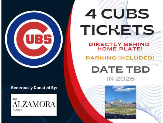 - Four Cubs Tickets Directly Behind Home Plate and Parking