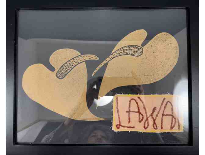This one-of-a-kind handmade artwork by Kauaʻi artist Shannon Hiramoto features an original woodblock print of two Anthurium flowers, accented with intricate hand-stitching that spells out “Lawai” on vintage fabric. The combination of printmaking and textile work reflects Hiramoto’s unique style of blending tradition, place, and personal storytelling through craft.