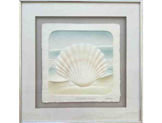 “Shoreline Scallop” – Hand-Embossed and Hand-Painted Artwork, 20" x 20", Professionally Matted and Framed