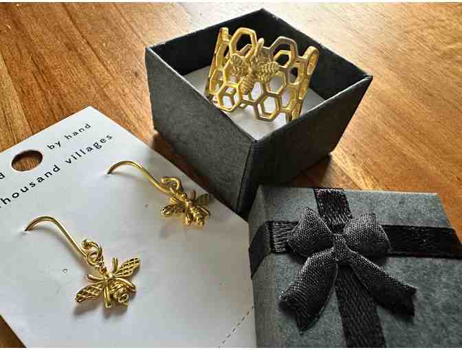 This beautiful ring is paired with the perfect earring set for a coordinated and BEEautiful look! Also crafted from electroplated brass with a warm gold finish, each earring features a petite bee charm that sways gracefully from a classic ear wire closure. Light, lovely and full of meaning, they’re the perfect everyday accessory or heartfelt gift. A Ten Thousand Villages Exclusive handcrafted in India.