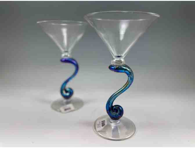 Handblown Two Dichroic Glass Martini Glasses By Kela's Glass