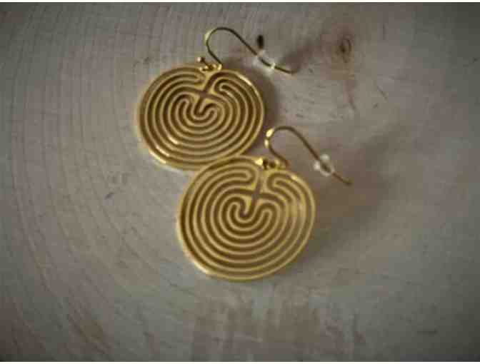 These exquisite gold-plated earrings are more than just a beautiful accessory; they are a wearable journey. Each 30mm earring is intricately cut with amazingly fine detail, featuring the timeless design of a classical labyrinth. Unlike a maze, a labyrinth has a single, winding path leading to the center and back out, symbolizing a spiritual journey, a search for purpose, and the clarity found through introspection. These earrings are a thoughtful piece for anyone who values a life's path and personal discovery. The earrings come with stoppers to ensure a secure and comfortable fit.