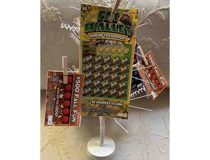 Tree full of lottery scratch-off tickets from $1, $2 and $5