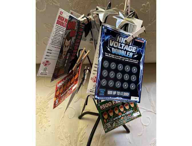 Tree full of scratch-off tickets valued at $1, $2 and $5
