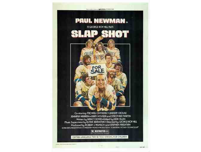 Slap Shot, the classic 1977 George Roy Hill ice hockey romantic comedy starring Paul Newman, Michael Ontkean, Lindsay Crouse, Jennifer Warren, Jerry Houser, Strother Martin and the Hanson Brothers.