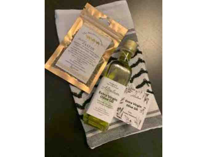 Enjoy this luxurious gift basket complete with Palestinian olive oil - bees wax salve - and a goats milk lotion in a natural jute tote bag!