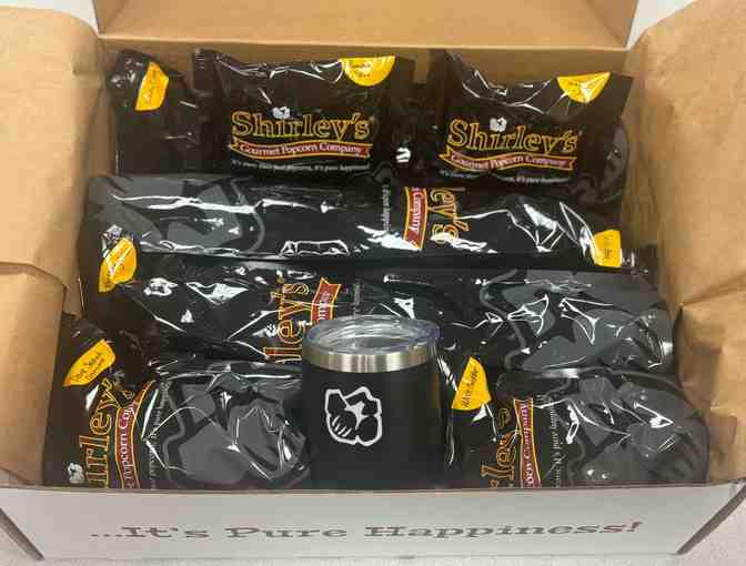 Enjoy this box of delicious popcorn from Shirley's gourmet popcorn in Bluffton Ohio! This box includes a Shirley's popcorn tumbler and 7 bags of gourmet popcorn! You will be set this winter for cozy nights at home with family, friends and popcorn for everyone!