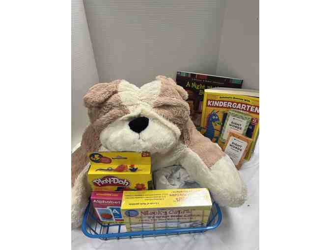 Includes: Plush big dog cuddle toy, Barnes and Noble adventure night at the bookstore, hardcover book, scholastic kindergarten workbook with sight words, flashcards and Play-Doh