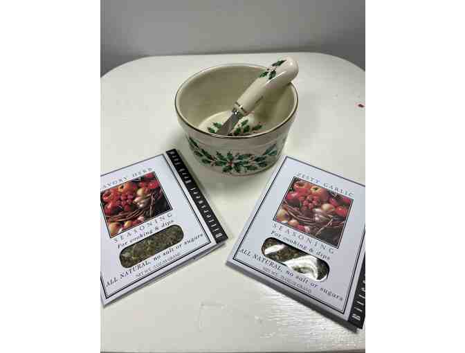 Lenox dip bowl with spreader and Bittersweet Herb Farm seasoning packets