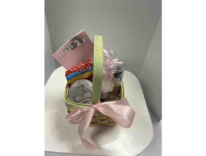 Includes: The Basket Includes A Cosmetology Certificate Valed at $35 that can be used towards a Blow out, facial or Gel nails and also includes a Candle, Socks, notepad & lotion body wash with shower poof.