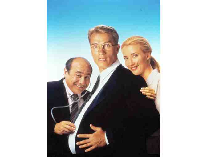 Junior, the 1994 Ivan Reitman man-getting-pregnant sci-fi romantic family comedy starring Arnold Schwarzenegger, Danny DeVito, Emma Thompson, Frank Langella and Pamela Reed.