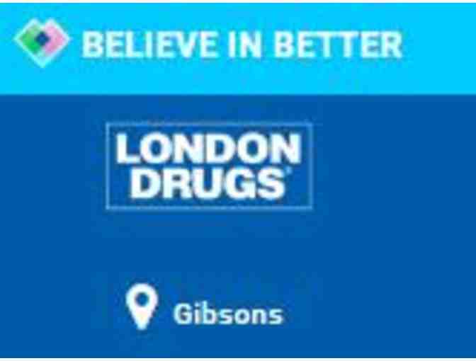 Drugs in the Sunnycrest Mall, Gibsons, offers this $100 gift certificate towards the purchase of items in the store. Gifts, computers, food, general store, health items and much more are available. At London Drugs, we go above and beyond the expected to take care of people and make their lives less complicated. See also items 163 and 221 for more London drugs Gift Cards.