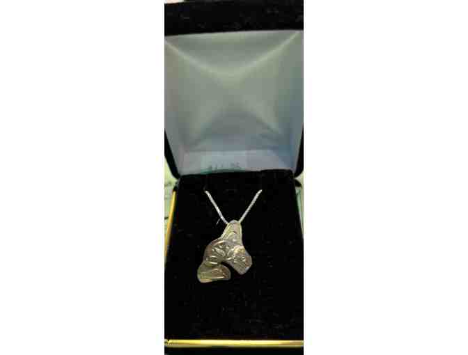 Tsain Ko Gift Shop offers a silver Killer Whale pendant created by Coast Salish Cowichan) artist Graham Henry