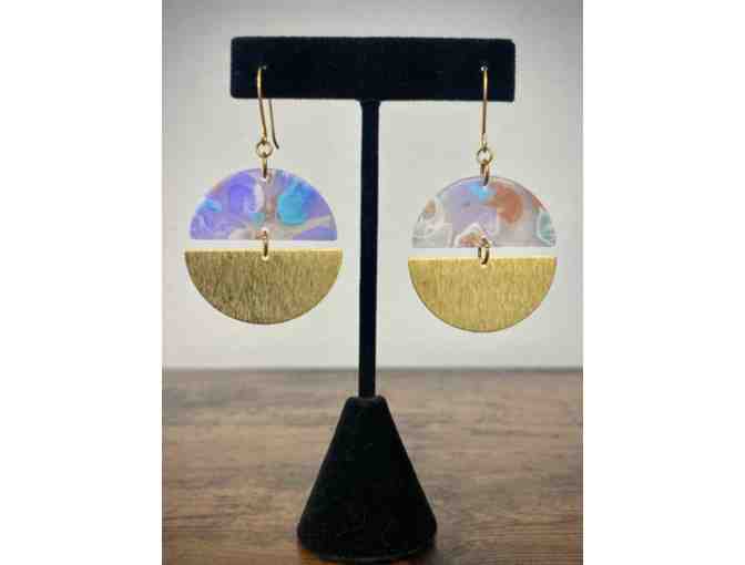 Looking for a special gift or something new to add to your own jewelry collection? Either way, these beautiful handcrafted blue/purple tie dye resin and textured brass earrings are just the thing!