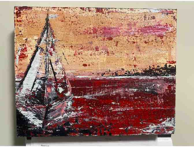 One Flower One Leaf: Painting titled "CRIMSOM TIDE" and 2 T-shirts -Total Value $150