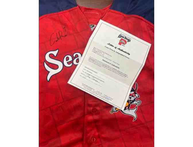 A signed, game-worn #7 jersey from Caden Rose of the Portland Sea Dogs
