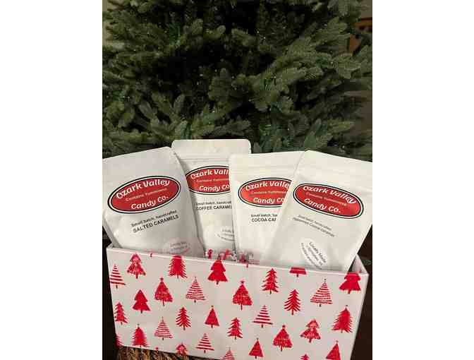 Ozark Valley Candy is a small local business making handcrafted small batch caramels with no added perservatives. Orginal flavors are salted, cocoa and coffee and holiday flavor of peppermint cocoa. Cost is $32