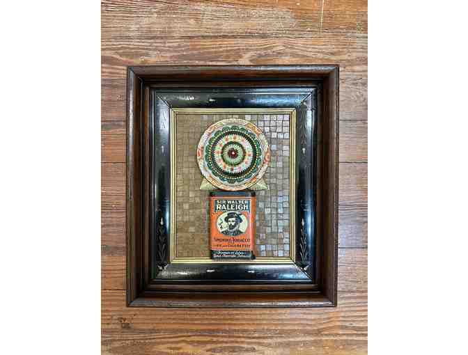 A found object mosaic in an antique Victorian frame made by West Cape May artist Carla Shaeffer. Measures 12.5 inches wide by 14.5 inches high.