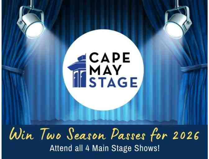 This item is good for two season passes to see all four of Cape May Stage's 2026 main stage performances. Enjoy award-winning shows with Broadway quality acting in the nation’s oldest seaside resort. The winner will receive two complimentary seats for four different show. Season passes can not be used for opening night performances or special musical events. Must be used before December 31, 2026.