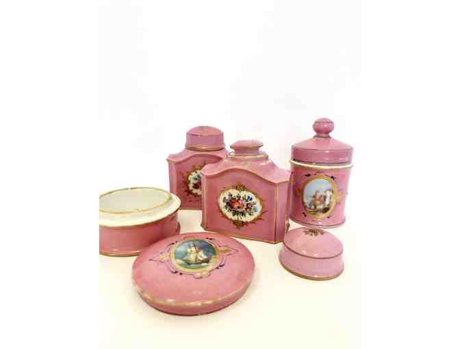 Vintage porcelain tea caddies or trinket holders.