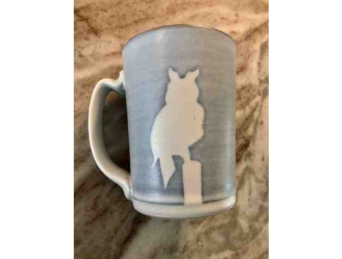 Beautifully crafted mug with subtle blue/grey exterior and light yellow interior. safe for microwave and dishwasher.