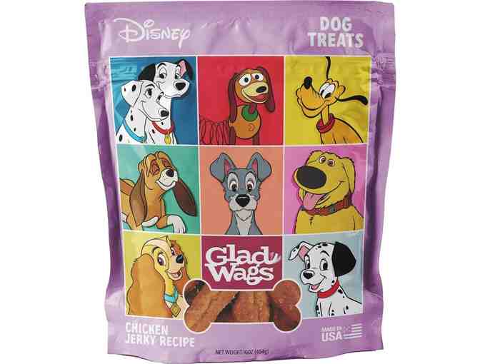 Disney Glad Wags Chicken Grain-Free Jerky Dog Treats are the perfect blend of fun and flavor for your furry friend's snack time! These wholesome treats are made in the USA with real, USA-sourced chicken as the top ingredient, giving your pup with a protein-packed and nutritious snack. Crafted without any wheat, corn, soy, or artificial additives, these treats are ideal for dogs of all sizes and can be used as a reward for good behavior or simply to show your pup some love. 16 ounce bag.