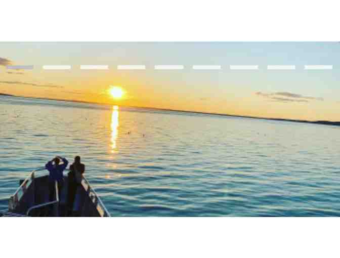 This evening trip is one of the most beautiful ways to experience Frenchman Bay and Acadia National Park as the sun sets. The first hour of this trip is a traditional nature cruise: we follow the east coast of Mount Desert Island and offer narration and opportunities to see the most stunning shoreline of Acadia National Park. Throughout the trip, we look out for bald eagles, peregrine falcons, harbor porpoise, seals, and other wildlife. We also share information about the environment, history, and culture of the area.